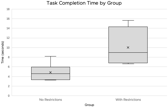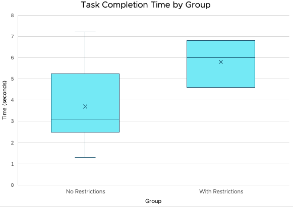 The results showed that users with dietary restrictions consistently took longer to complete tasks, as reflected in the box plot. This highlighted an accessibility gap in the interface.